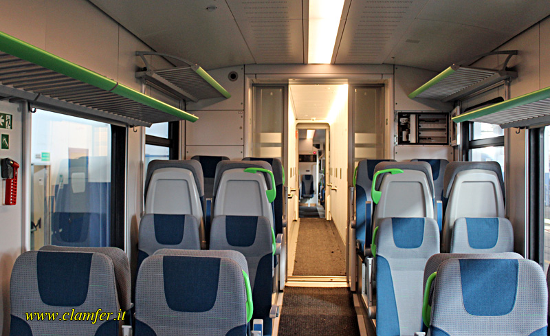 Gl’interni a classe unica in modularità open space (Foto G. Fiorentino). Siamo stati informati che il nuovo convoglio a partire dal 10 novembre 2022, avrebbe effettuato corse prova per istruzione al personale di macchina e per accumulare la percorrenza di mille km, onde ottenere le necessarie autorizzazioni alla circolazione. La notizia ha scatenato la caccia al treno in linea da parte di fotografi e curiosi. Mentre il 24 novembre c.a. ci sarà la presentazione ufficiale e l’immissione in servizio che gradualmente pensionerà il pur buono e dignitoso materiale rotabile in esercizio a TD.