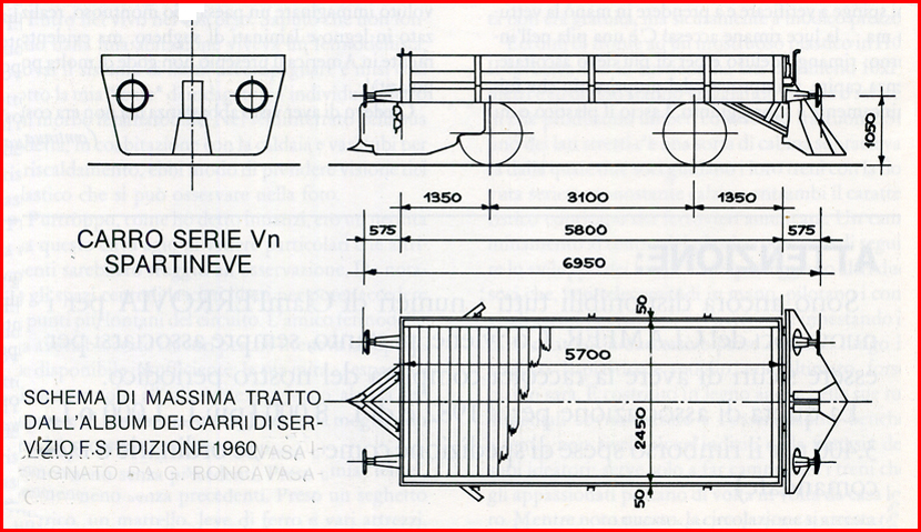 I carri spartineve e spazzaneve raggiunsero la loro maggiore diffusione intorno al 1909. Essi venivano impiegati sulle linee di montagna in alternativa agli ordinari speroni spartineve a seconda dell’andamento e dell’intensità delle nevicate. Quando queste erano frequenti la linea veniva sgomberata e mantenuta libera dalla neve a mezzo di treni speciali, i treni spartineve, costituiti da una o due locomotive a vapore spingenti un apposito carro spartineve. I citati carri erano suddivisi, e quindi impiegati, secondo il tipo e la potenza; infatti alcuni ‘spartivano’ semplicemente la neve raccolta in strati di altezza minore di quella del rostro, altri, oltre a spartirla, la sollevavano e l’allontanavano anche ad altezze maggiori. Per la realizzazione di questi veicoli venivano di solito impiegati vecchi carri alle cui estremità, al di sotto del piano di caricamento, si applicavano tavole di legno rinforzate con lamiere chiodate formanti il rostro. Il rotabile, così attrezzato, veniva caricato di ghiaia che fungeva da zavorra: quest’accorgimento, aumentandone l’aderenza e oltre a fornire una massa d’urto maggiore, evitava anche l’impennamento e quindi lo sviamento del carro in caso di neve molto compatta. COSTRUZIONE DEL MODELLO Lo spartineve proposto in queste note riproduce in scala H0 quello F.S. marcato con il numero di servizio 806387 e realizzato in unico esemplare nel 1923. Questo carro presenta la particolarità di essere munito ad una estremità di un rostro a vomere e dall’altra di un semplice rostro, entrambi in ferro. Il modello è ottenibile senza eccessiva fatica riducendosi il tutto alla sola costruzione di un solo vomere. L’altro rostro, essendo quello delle locomotive a vapore, è reperibile nella gamma delle parti aggiuntive commercializzate da diverse ditte.